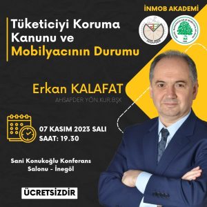 Yönetim Kurulu Başkanımız Erkan Kalafat, derneğimiz ile İnegöl Marangoz ve Mobilyacılar Odasının birlikte düzenlediği İNMOB Akademi adı altındaki seminerler serisinin ilkinde “Tüketiciyi Koruma Kanunu ve Mobilyacılardaki etkilerini” anlatacak.